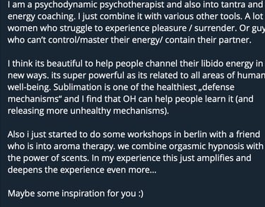 To weave hypnosis, ritual, tantra, sound into transformative experiences.